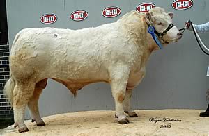 First to hit the 4,000gns mark was the day's supreme champion, Caylers Umbro CH27, a rising two year old by Doonally New and out of a homebred cow going back to Newthrums Regal. Bred by the Barker family who were once again making a highly successful 540 mile round trip from their Nuthampstead, Royston base, Umbro was knocked down sold to John H McIndoe, Rankinston, Ayrshire. Sharing the second 4,000gns bid was Reddings Uriah, a July 2003 born Balthayock Matthew son and out of a Kersknowe sired cow. Uriah, who was placed second in his class, was offered by JS Wilson, of Annan Water, Moffat and went home with RH Gladstone, Thornhill, Dumfries. Next to go at 3,200gns was the Welsh bred Gwenog Utaha CH26, from John Howells, Llanybydder, Ceredigion. Utaha who was unplaced in his class due to the fact John's son, Peter was the event's judge, was by the 18,000gns Derryharney Outstanding and out of a Midlock sired homebred cow. He was knocked down sold to Lincolnshire buyer, John Pridgeon, Keddington, Louth.